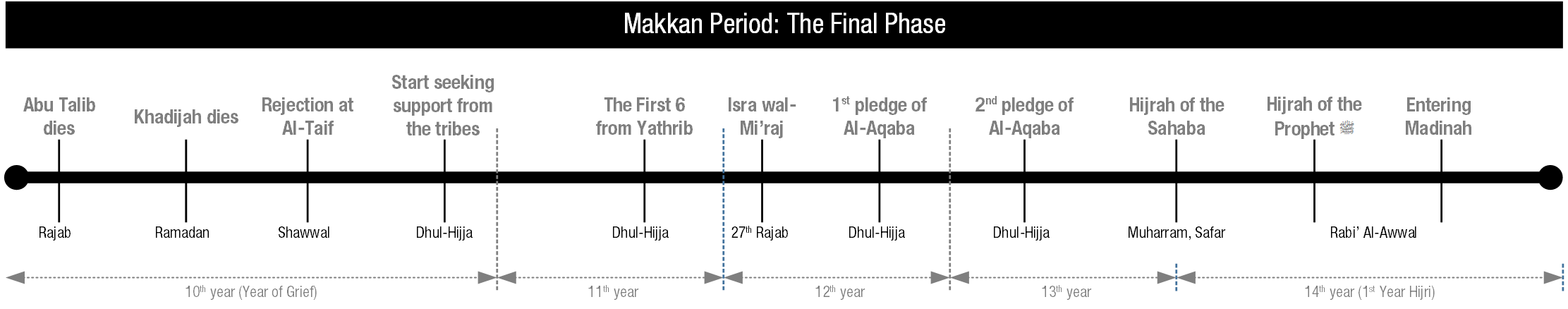 Seeking the support (nusrah) from the Arab tribes continued each year during the month of Dhul-Hijja when the tribes would descend on Makkah for the annual pilgrimage (hajj), an event which dates back to the time of Ibrahim and Ismail (Peace be upon them both).